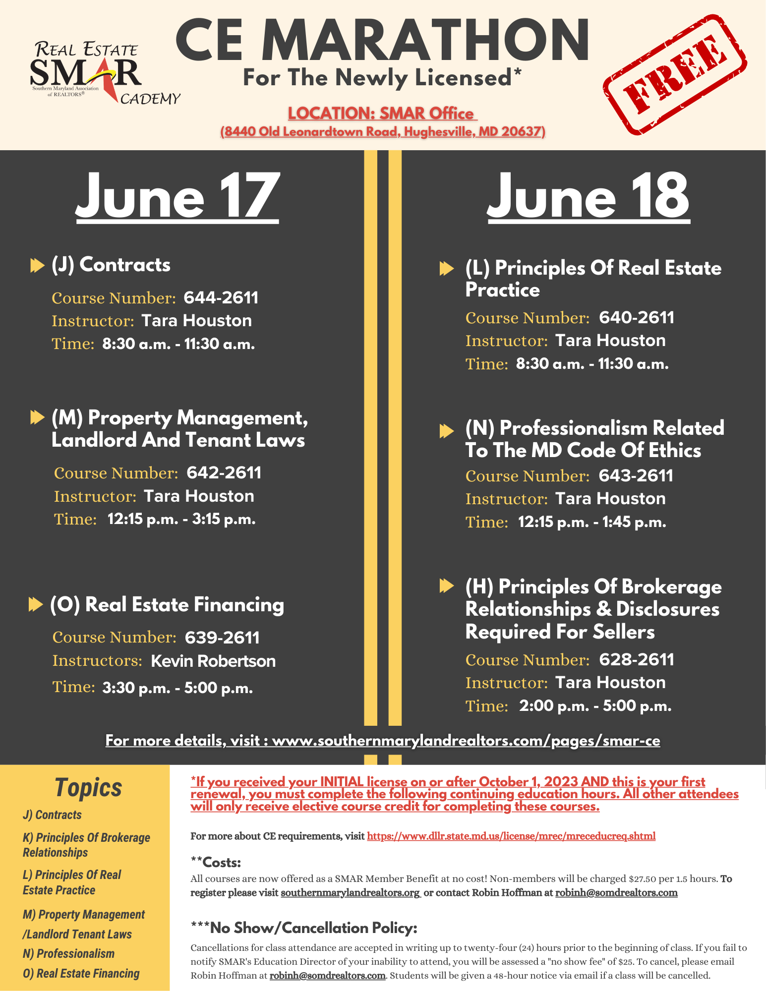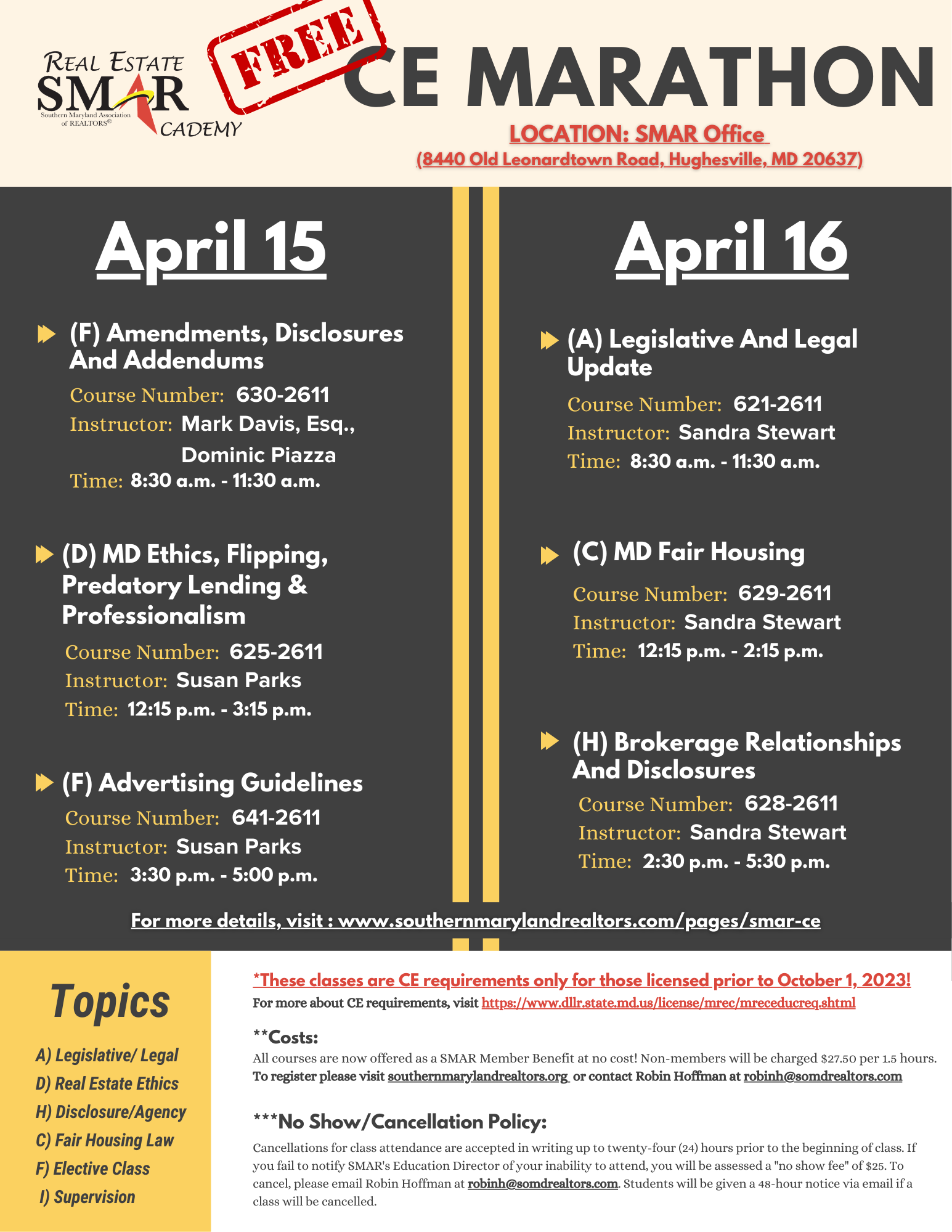 Join SMAR for another traditional CE Marathon on April 15-16 and a CE Marathon for the newly licensed on June 17-18!