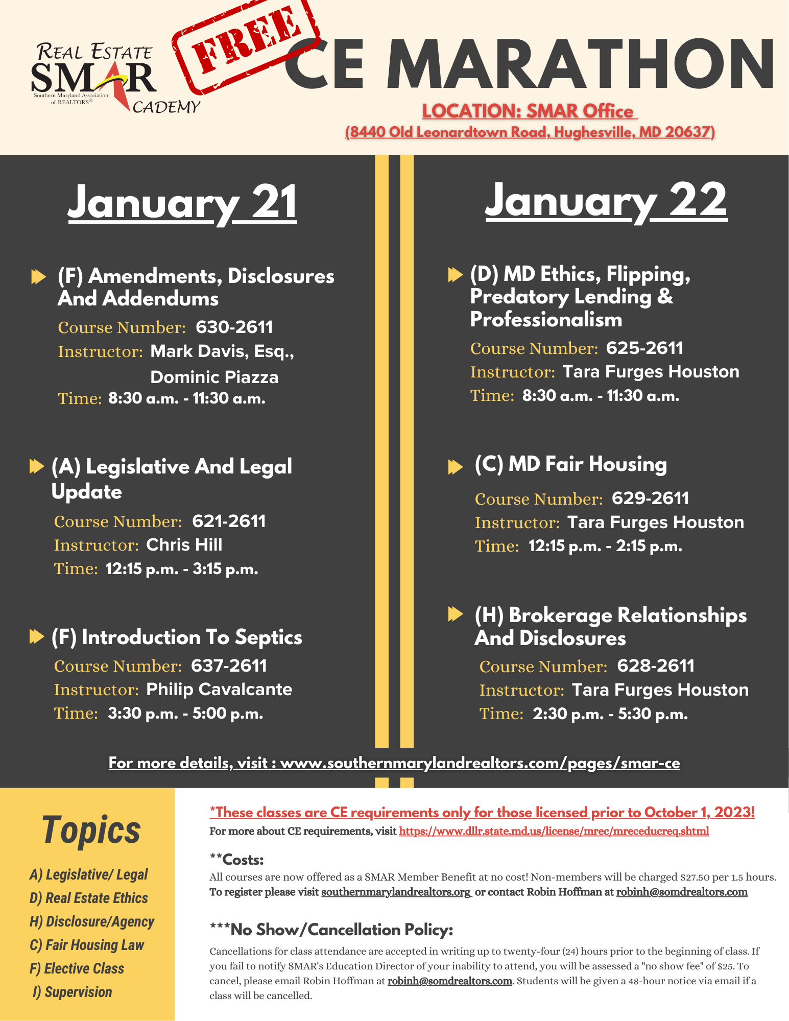 Join SMAR for another traditional CE Marathon on January 21-22 and a CE Marathon for the newly licensed on February 4-5!