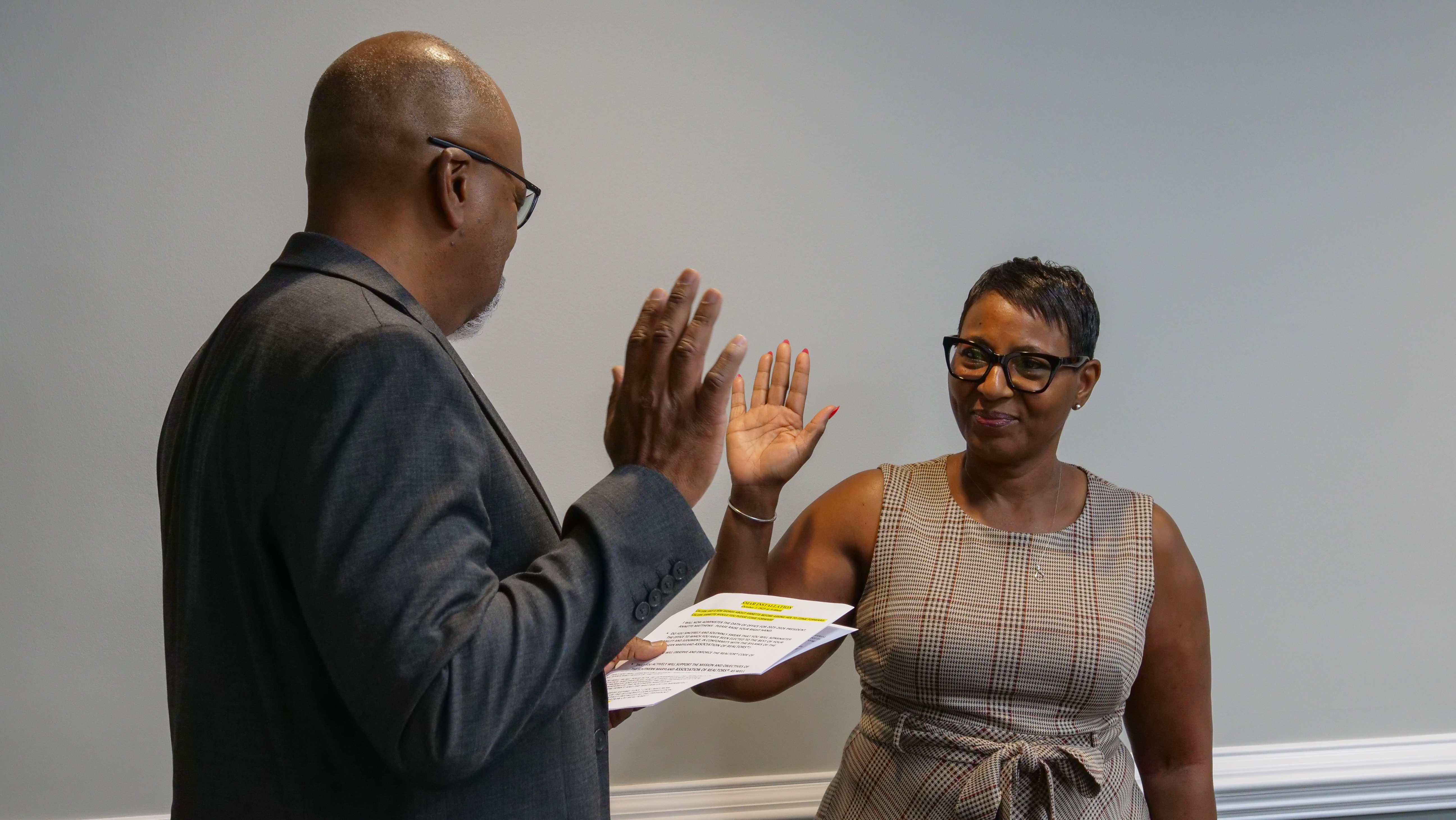 Pictured: SMAR President Annette Matthews, is administered her oath of office by her husband, Calvin Matthews. |